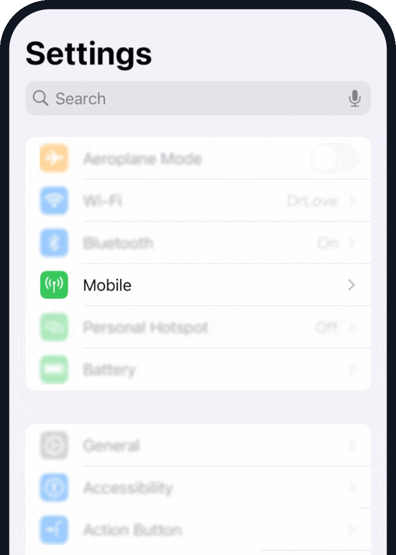 Go to Mobile Data and select Simify to ensure all data traffic uses your eSIM.