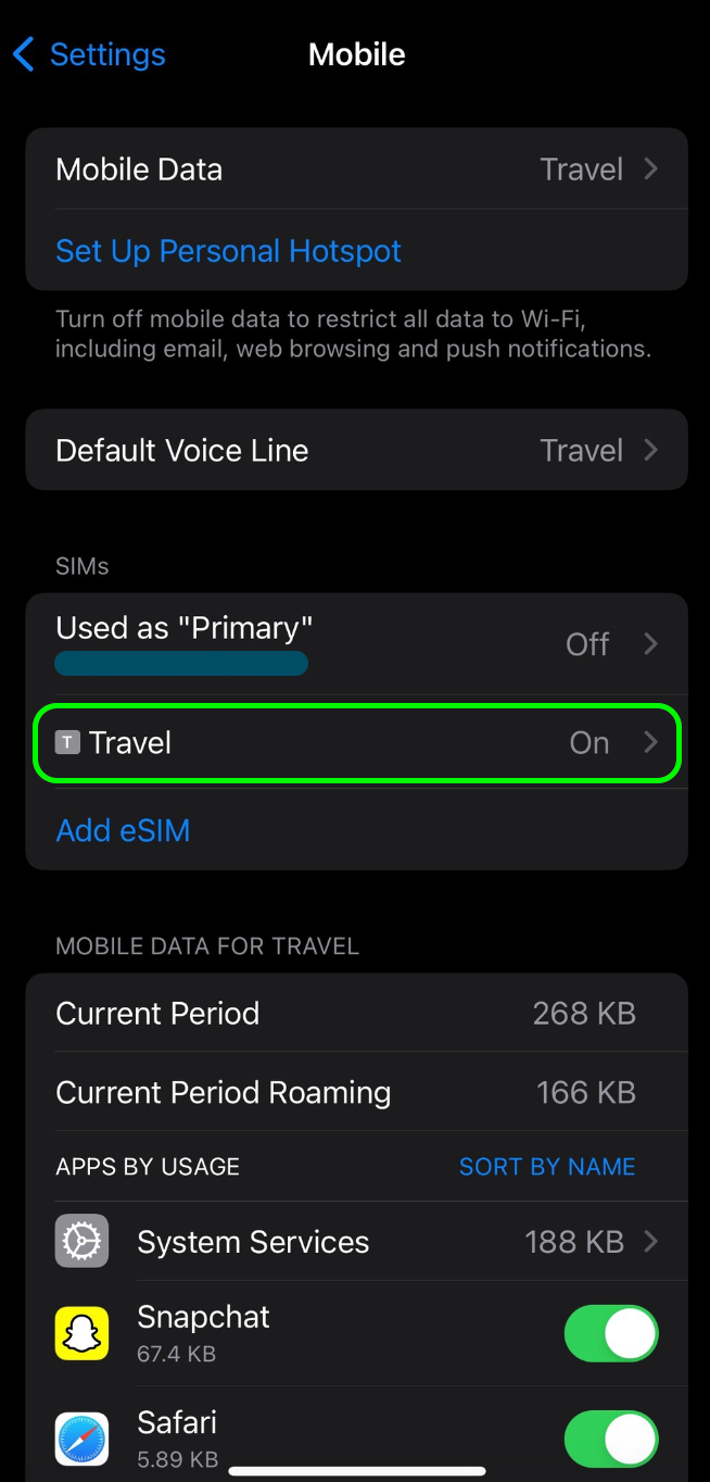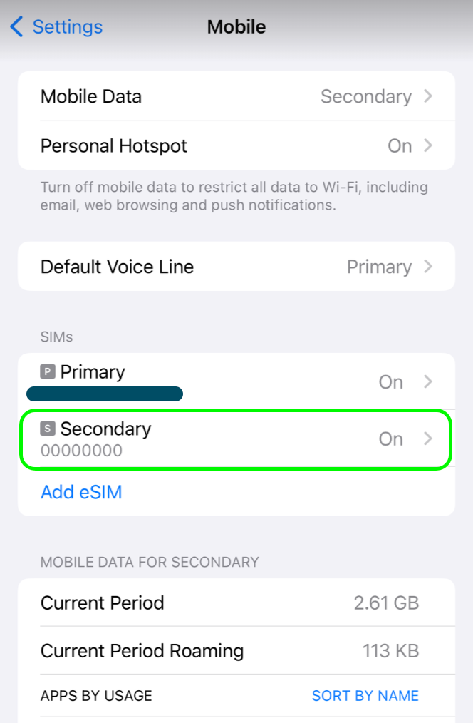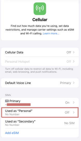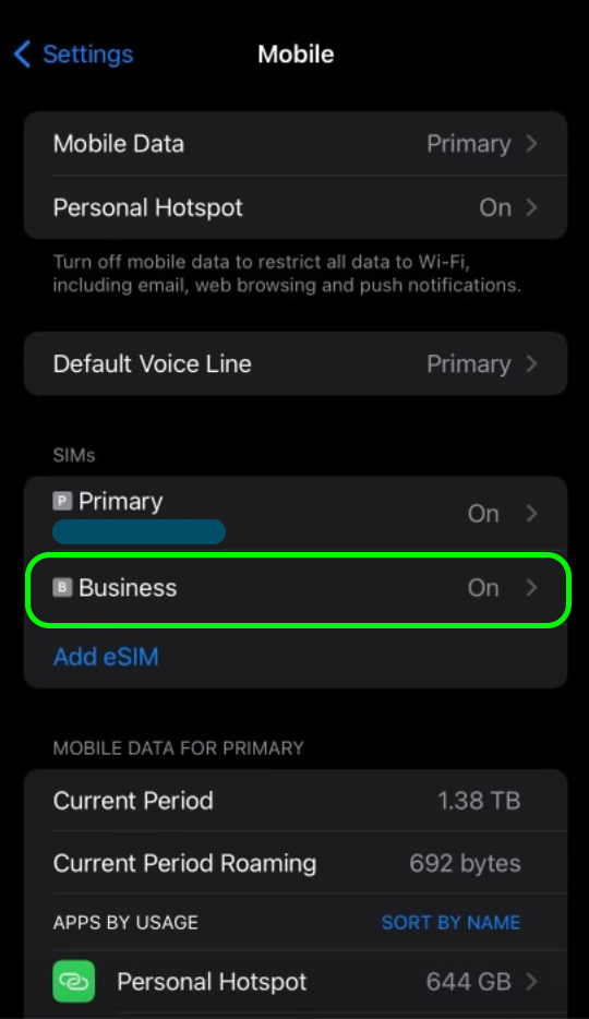 Sometimes, your phone will give your eSIM a default name like Business, Mobile Data, Secondary, Personal, or Travel.