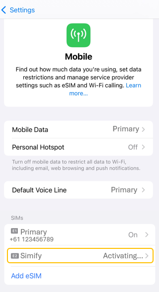 If your eSIM shows “Activating”, don’t worry, that usually means it’s waiting to connect to a local network.