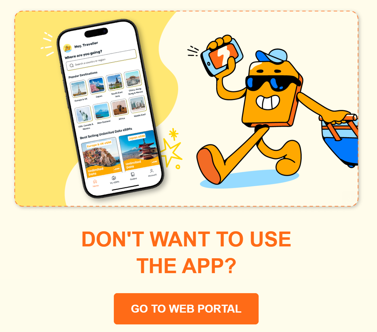 Here's some info on how to make the most of our Customer Portal's features. Whether you need to install and activate your eSIM, check your remaining data, find answers to common questions, or chat with our friendly support team, we've got you covered 🙌